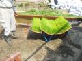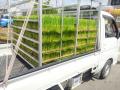 少し離れた田んぼに植える分を軽トラで運ぶために積込み作業開始です