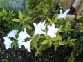 本日はあいにくの雨ですので 現場作業は中止で 事務処理やら先輩方は現場の着工準備をされたり 新人さんたちも一緒に日頃使っている道具の手入れをされています。 話は変わりますが、 会社付近のヒラドツツジが咲きだしました♪ 4月21日(白) 4月25日(白) 花びらにのっている雨のしずくがキラキラしてきれいですね〜♪ 4月21日(紫) 4月25日(紫) 紫のほうは、まだ蕾ですがもう少しで咲きそうですね♪ ほかの花たちも雨に濡れてイキイキしていますね♪