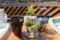 挿し木したつつじと、浄水場内で採取したコケを使います