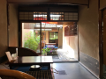 今の時期限定、表の引き戸と中庭の引き戸、奥の個室の扉が全部開け放たれ、風がす〜っと通って行きます。