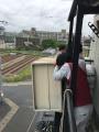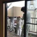 スチール製の書類棚を1階からロープで引っ張り上げて3階へ運ぼうという作戦