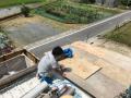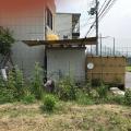 連休明けの火曜日・・・ 「なんかやってる〜」 下に降りてみると・・・ 屋根が出来ておりました〜 ![]() 造園技能検定2級を受検する3人組・・・ お隣さんの畑をお借りして、練習場所を作りましたが、1区画が炎天下・・・ ![]() そこで、番頭君が簡易日陰の屋根を作っておりました〜 ![]() 水糸を張る練習中の「間嶋」 四ツ目垣に取り組む「古田」 トマト畑の横で、こちらも四ツ目垣に取り組む、トマト嫌いの「中村」です ![]() お盆休みまで、休日返上で練習練習〜 合格への近道は、ひたすら「練習あるのみ」。。。デス ![]() みんなガンバッテ〜 ![]() |