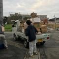 フェンスの梱包に使われていたもの、樹木の栄養剤が入っていたもの、色々な段ボールをためておき、古くなったカタログ類も一緒に軽トラックに載せ、通りの電信柱の所まで運びます