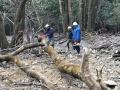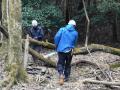 伐採用の楔(クサビ)を打ち、裁断部分を少し広げて、あとは人力で〜