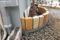 こんにちは、大渕です^^ 本日も元気に現場報告!! 新潟市西区T様邸をご紹介します(´∀`) 新築外構のご依頼です。 家の顔となるフロントヤードを中古耐火レンガの花壇と、木調FRP枕木で飾りました♪ 窓枠だけのシンプルな外壁にリズム感が出ましたね(゜ω゜) 平面では末広がりの緩やかな曲線目地を入れたアプローチ♪ アクセントに天然石飾りを入れましたよ^^ 花壇を眺めながら玄関へいらっしゃいませ♪ 施工前はこちら^^ どんな大変身を遂げるのでしょう! 工事スタートです! まずは新潟必須アイテム、折板屋根カーポート! 冬場の雪かき手間も半減、夏場の日差しも和らげてくれます(´∀`)ノ 今回は一台用のカーポートの間口(入り口の幅)を狭めています。 そして、花壇とアプローチは…あいにくの雨です(´д`) 季節の変わり目だからでしょうか、最近お天気が崩れることが多いですね(;ω;) しかし、こんな風に準備さえあれば多少の雨はへっちゃらです…! 職人さんのアイディア次第ですね! お隣さんとの境界には化粧ブロックを積みますよ! ベースを打って…、 ブロックを積み積み…。 間には鉄筋もしっかりと! ブロック一つの重量は12.8キロあります(゜゜) 重いのですが、すべて手作業です! 玄関前は、素敵なアプローチに仕上がりました! 枡のまわりも綺麗に仕上がっております! 花壇と角柱もイメージそのままの仕上がりですね(´∀`//) 職人さんがひとつひとつ丁寧に、レンガの目地をコテで仕上げてくださいます。 ランダム積みで味のある仕上がりになっていますよ♪ ナチュラルな雰囲気です^^ さて、残りは土間コンクリートで完成です♪ 全景はまたご報告します(゜ω゜)ノ ★庭匠館ホームページはこちら ★あいざわブログはこちら
