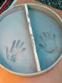 こんばんわ!長岡店水品です☆ 先日、当店スタッフで 記念手形の試し作業を行いました! 記念手形とは・・・ こんな感じのものです♪ ご家族の手形をお庭に残すという記念行事☆ 手形だけでなく、タイルやビー玉などを付けて装飾もできます♪ 思い出としてお庭に置くのもいいですよね! そしてこの記念手形をイベントでも行おう!というわけで 手形試作に至りました。 イベントでは、やはり記念としてお持ち帰りできなきゃ! ただ、セメントがどのくらいの時間で固まるのか?? そこが重要になってくるわけです(@_@) 今回は、粘土セメント というものと、粘土セメント+セメント の2種類で実験しました! まずボイド管という丸い枠組みに粘土セメントを コテでならしながら入れていきます。 セメントを入れる途中で、ラスという網状の資材を入れます。 セメントが上に浮き上がらないようにするためです。 ちなみに室内と外で2つ用意! 2種類の色の違いがわかりますでしょうか? 薄い方が粘土セメントのみ、濃い方が+セメントを入れたものです^^ 少し時間を置いてから、いよいよ手形! ひんやりしてて冷たかったです笑 こんな感じ! 一緒にタイルやビー玉を入れて色を付けていきます♪ この作業がたのしいです(*^。^*) ちなみに上が室内、下が室外のものです。 さあ、これからどのくらいの時間で固まるのか! 時間を計測! ・ ・ ・ ・ ・ ・ ・ ・ が、 結果、 夕方6時くらいにやっと固まり始めた感じでした…(入れ始めが3時) こ、こんなに固まらないものなんですね(困惑) 翌日には完全に固まっていたのですが、それは+セメントの方だけで、 粘土セメントのみの方は3日過ぎても固まりませんでした・・・・・orz ・・・こんなに固まらないものなんですね・・・!!!(2回目) 実際粘土セメントというものは初めて使用したのですが、 なかなか残念な結果に…笑 学習しました。 もっと効率のよいものがあるか検討していきます!また後日! ★庭匠館ホームページはこちら ★あいざわブログはこちら