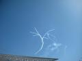 こんにちわ、加藤です 今日も岐阜県各務原市は、ど快晴です タイトル通り、『○○○前日』ということで、 明日は、航空祭 しかし、午前中ケムリを出しながら飛行機が飛んでいました 航空祭は明日では???と思いつつも、 小学校以来に見るので、心が少しはしゃいでしまいました カメラを片手に、 2つの飛行機が・・・ 何を描いているのでしょうか??? ハートです 打ち抜いてます 5つの飛行機が・・・ もうお分かりですね 星です 芸術です 明日もお仕事なので、航空祭には行けずじまいですが、 庭遊館で音だけ聞いて、楽しみます ひそかに、庭遊館はナイスな観測ポイントです 是非、明日庭遊館へ →