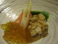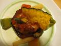 焼き物は甘エビの重ね焼き、丸茄子・パブリカ・オクラ・ヤングコーン・トマトソース・南瓜せんべいなど