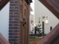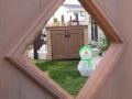 このファーム門扉の扉に開けられた窓から庭が見えています