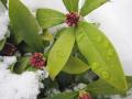 昨日の朝は、いつもとは違う感じで目が覚めた 雪の朝は色のあるものが鮮明に見えてくる 玄関の前に植えられた、スーヴニール・ド・ラ・マルメゾン 幾つも残った蕾は開くことが無い はなみずきの赤い実もしっかり雪をかぶっている 南天にも雪・雪・雪 沈丁花にも 雪 雪 雪 レツドシダーで作ったデッキに雪が積もった 春までは、使用することのないデッキ わずかに残ったシュウメイギクの花がなんだか寂しそう 雪が積もるとあたりが静かになり、外で吸い込む空気が美味しい もう何回目の冬なのか、幼い頃にはスキー場から家まで スキーで滑って帰ったこともある、もう体験することは、きっとない 春夏秋冬、その時を楽しめる日本に生まれてよかった。 |
