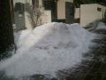 展示場の寄せた雪が溜まるいっぽうです。