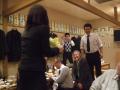 『タカショー仙台営業所の大山さんから花束をもらう会田所長を撮影しようとしている