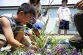 完成した寄せ植えを運んでいるうちに