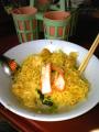 今朝、タイから帰ってきました 向こうは毎日、30度以上の夏日でとても快適でした。 しかし食べ物には苦しめられました タイで一番初めに食べたのがこれ!!タイの焼きそばみたいなものです これが悪夢の始まりです・・・どーもパクチーなどの香草類が苦手みたいです 初日には王立寺院の「ワットポー」に行きました 中には巨大で美しい涅槃仏が安置されていました。 この後にワットワルンという別の寺院に行ったのですが日本円にして¥120の詐欺みたいな商売にひっかかり気分が悪いので写真を撮るのを止めたので撮っていません寺院のなかで詐欺まがいの商売が横行していたのにはさすがに幻滅でした・・・ 1日目はこんな感じでした