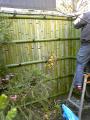 昨日から製作している建仁寺垣が完成しました 完成した後に「これって何年位持ちますか?」って聞かれて「15年位でしょうか」てお答えしたのですが、この質問にはいつも頭を悩まされます と言うのは私の経験で竹垣を交換しようと思うタイミングは人それぞれで縄が切れだしたらもう駄目だと思う人もいれば、もう今にも崩れそうでも交換しない人もいます なのでどのタイミングまでかと悩みます まー何でもそうなんですが・・・・ 天然竹垣でいつも思う私の持論ですが「朽ちていく姿も侘びであり寂びであると思います。家と一緒に竹垣も朽ちていくのが自然だと私は思います。」 では今日はこのへんで
