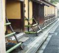 晒竹の犬矢来を製作しました 私は「犬矢来」と呼んでいますが「駒寄せ」と呼ぶ人も多いです ただ私の見解では駒寄せというのは昔、馬を繋いでおく意味があると思うのでこれでは馬は繋げないと思います なので弊社で言っている駒寄せはこれです 犬矢来(いぬやらい) 道路に面した外壁に置かれるアーチ状の垣根。竹や木などでできたものが多いが、現在は金属製も多く用いられる。馬のはねる泥、犬走りと呼ばれる軒下を通る犬や猫の放尿から壁を守るもの。駒寄せから発展したとも言われ、泥棒が家に入りにくい効果もある。 ウィキペディアにもこのように説明してあるので間違いないと思います。 ただ京都の祇園町などでは景観法で竹しか認められていません。