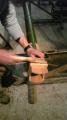特に2枚目の写真、「木製のあんきょ」(樋から流れてくろ水を受け止めて下に排水する処)に竹を差し込むのに苦労しました