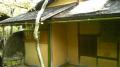 今日は昨日、製作した竹樋と萩の松明垣を取付に行ってきました