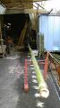 約10mの竹樋を制作しました 今回の樋は長さ約9.5mで両サイドに節がついていないといけなかったので竹藪で竹を探すのに苦労しました 特に樋は真っ直ぐな竹じゃないと樋受けにはまりません 青竹なので火で焙って真っ直ぐにすることは不可能なので本当に難しい仕事の一つです