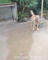 りきくんが砂を掘れるようにと、小屋の横は本来の地面を残しているため、掘った土が舗装面にあがってきています。