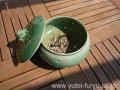 カエルさんがちょこんと乗っかっているコレは、なんと蚊取り線香入れだそうです。